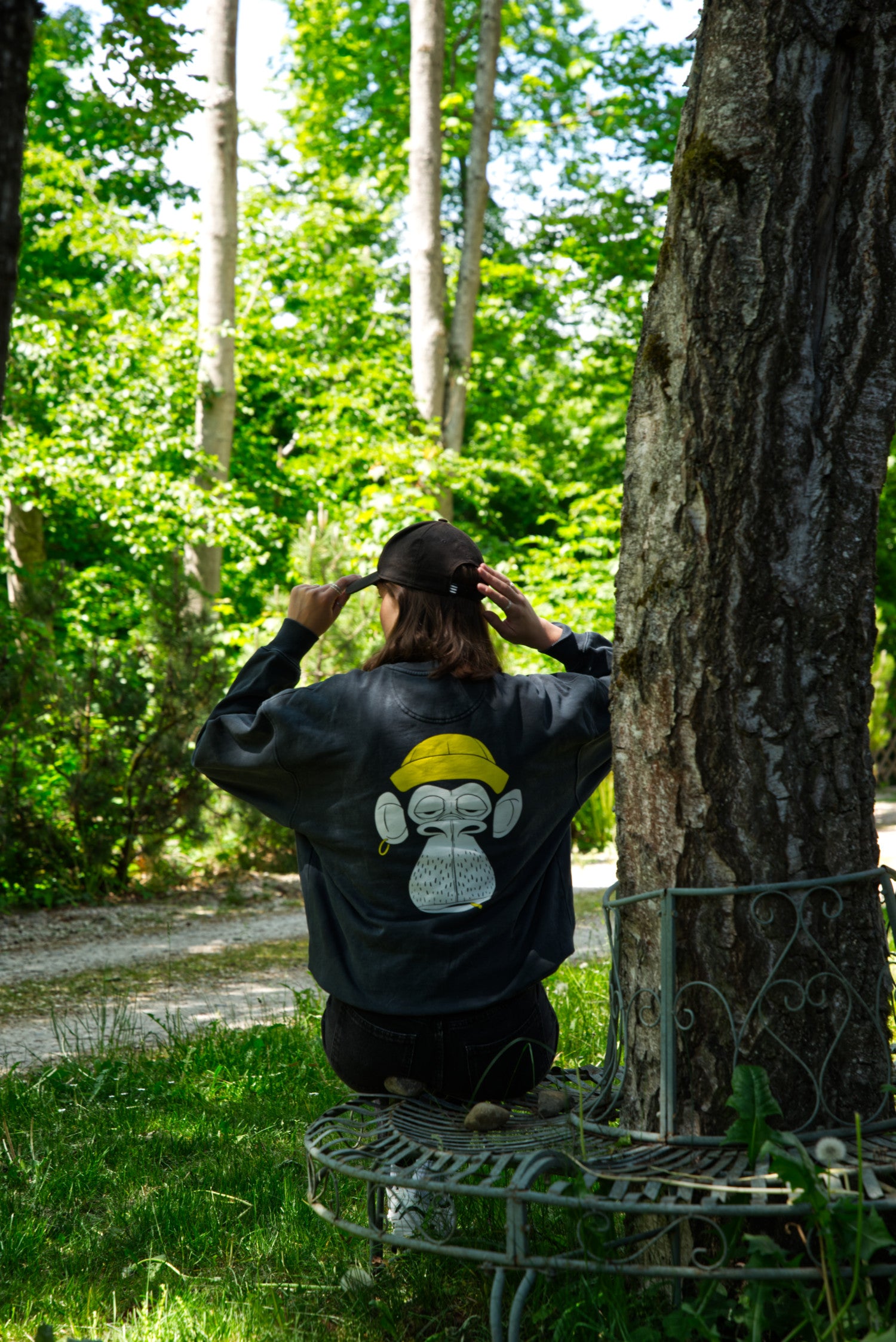 On the front, the Mindfully Bored logo is centered at chest height, and on the back, the minimalist "Bored Ape Loki" is printed in two colors.